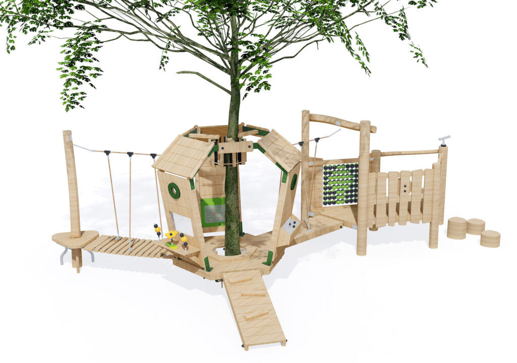 Zestawy zabawowe, które łączą funkcje rekreacyjne z ideą integracji w naturalnym środowisku. W odróżnieniu od klasycznych konstrukcji wolnostojących, tego typu urządzenia są projektowane tak, aby współistnieć z żywym drzewem – zarówno pod względem konstrukcyjnym, jak