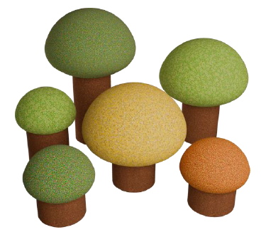 To idealne rozwiązanie aby zmienić każdy plac zabaw w urokliwy, mały las. Drzewka mają różne wysokości oraz kształty, co pozwala na tworzenie ciekawych aranżacji przestrzeni i rozwijanie wyobraźni dzieci. Ich zaokrąglone formy oraz przyjazna kolorystyka odpowiadająca porom roku (odcienie zieleni, żółci i pomarańczu) sprawiają, że doskonale komponują się z naturalnym otoczeniem, jednocześnie przyciągając uwagę najmłodszych. Elementy te mogą pełnić funkcję dekoracyjną, ale także służyć jako przeszkody do wspinania, balansowania czy zabaw ruchowych.