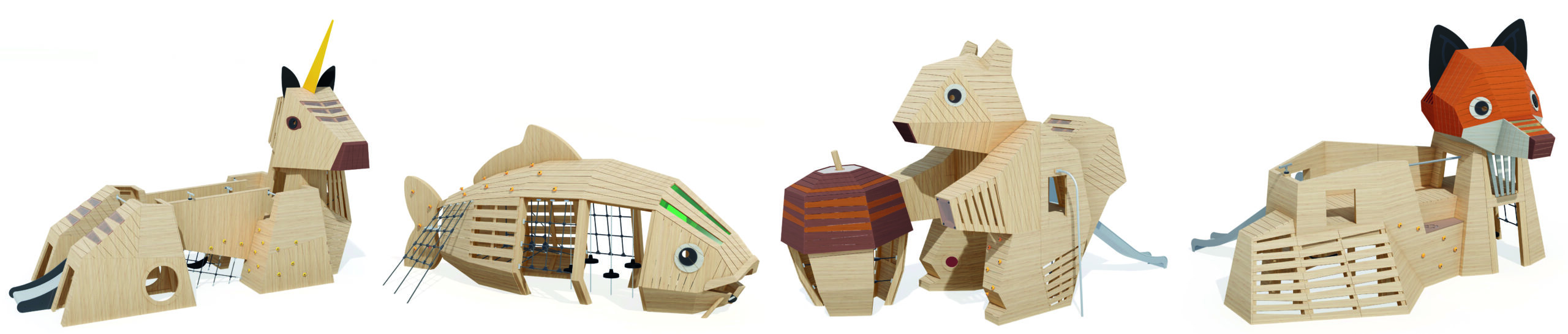 Naturalne konstrukcje inspirowane światem zwierząt wprowadzają na plac zabaw wyjątkowy klimat i przyciągają uwagę już z daleka, zachęcają dzieci do ruchu – wspinania się, przechodzenia i odkrywania nowych sposobów zabawy. Dzięki drewnianym zwierzętom można stworzyć spójne, tematyczne place zabaw.